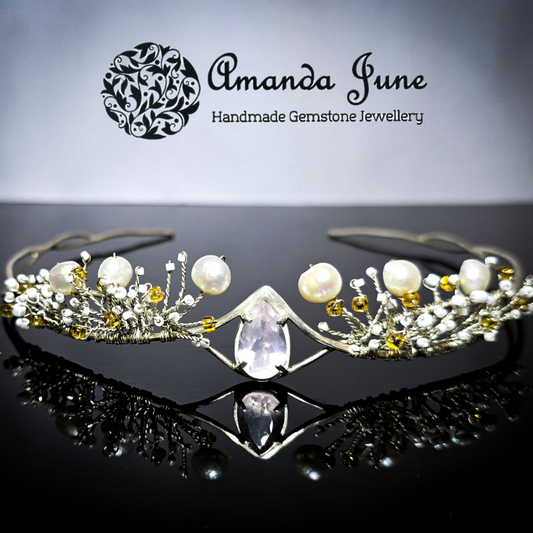 Rose Quartz and Natural Pearl Bridal Tiara Handmade in Sterling Silver