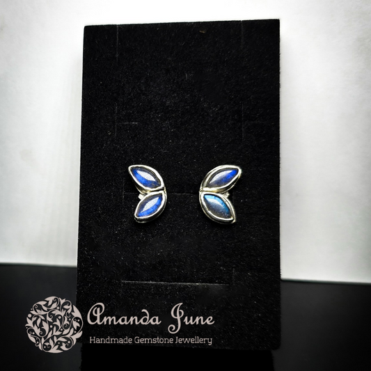 Labradorite Butterfly Stud Earrings Handmade in Sterling Silver