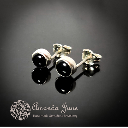 Onyx Gemstone Unisex Stud Earrings Handmade in Sterling Silver