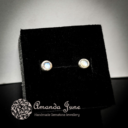 Rainbow Moonstone Dainty Gemstone Stud Earrings Handmade in Sterling Silver